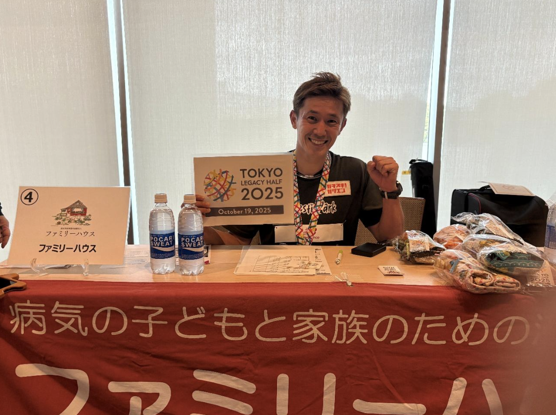 東京レガシーハーフマラソン2025では、ファミリーハウスのチャリティアンバサダーでありアスリート俳優の森 渉さんはじめファミリーハウスを支援する15名のチャリティランナーが出走されました。この時期としては暑く絶好のコンディションではありませんでしたが、皆さんそれぞれ楽しんだレースでした。フィニッシュ後はチャリティラウンジの寄付先団体ブースで、チャリティランナーの皆さんと来年3月の東京マラソン2026のことなど歓談のひとときを持たせていただきました。ありがとうございました。