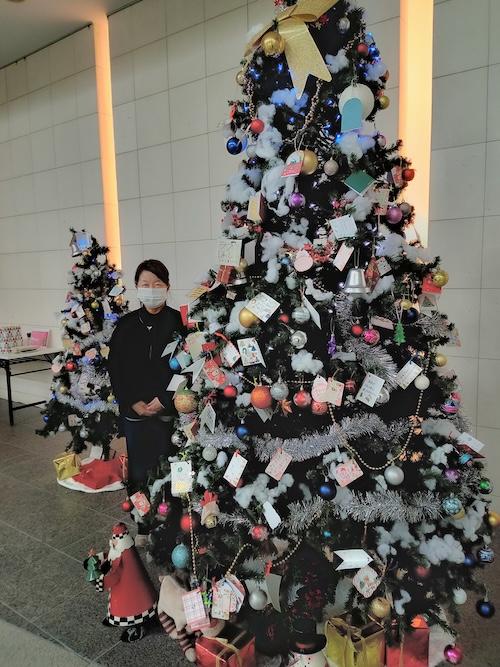 ツリーは大人の背の高さほどの大きさで、利用者のお子さんがツリーを見つけると「すごーい!」と歓声が上がりました。