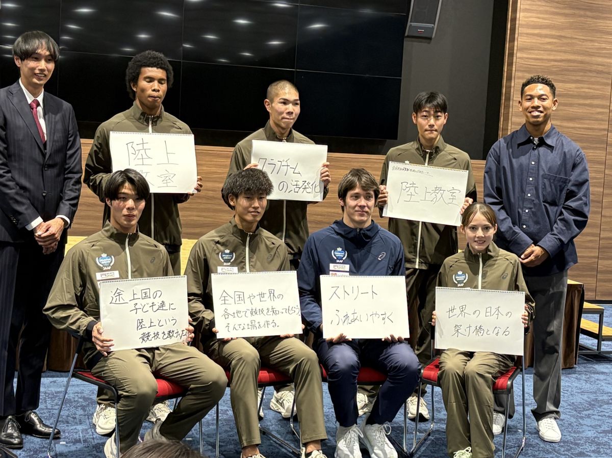 選手の皆さんは登壇して緊張している様子でしたが、サニブラウン選手からの激励のコメントを受け、時折笑みもこぼれていました。