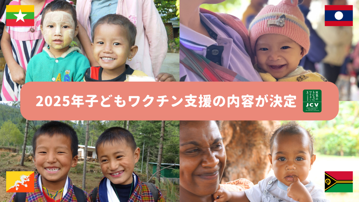 皆さまのおかげで、2025年も総額1億1,774万5,176円分のワクチンおよび関連機器等を、ミャンマー、ラオス、ブータン、バヌアツの子どもたちに贈ることができました。皆さまのあたたかいご支援に、心より感謝を申し上げます。