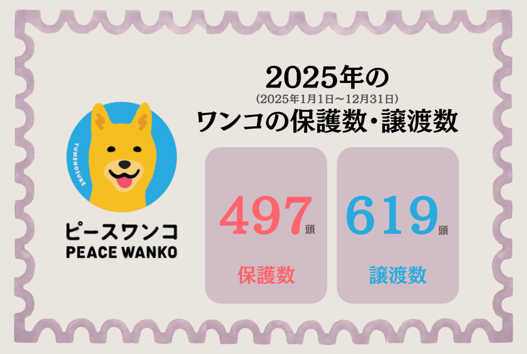 2025年は497頭のワンコの命を救うことができ、619頭のワンコが幸せな家族のもとへと卒業していきました。
