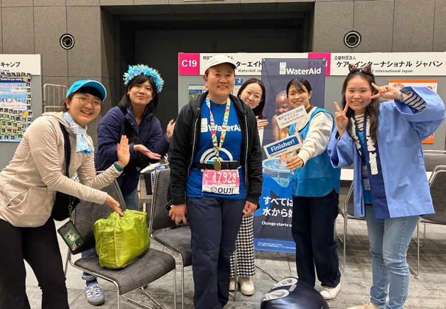 In addition, at the Tokyo International Forum, we joined other charity organizations in hosting a booth inside the Charity Lounge, where Charity Runners and their families and friends could gather after the race. We welcomed runners with applause, listened to their race stories, and took photos with panels displaying their finishing times. Many expressed warm words of appreciation for being able to run as part of Team WaterAid. Watching Charity Runners say “See you again!” as they left the lounge left a lasting impression on us.