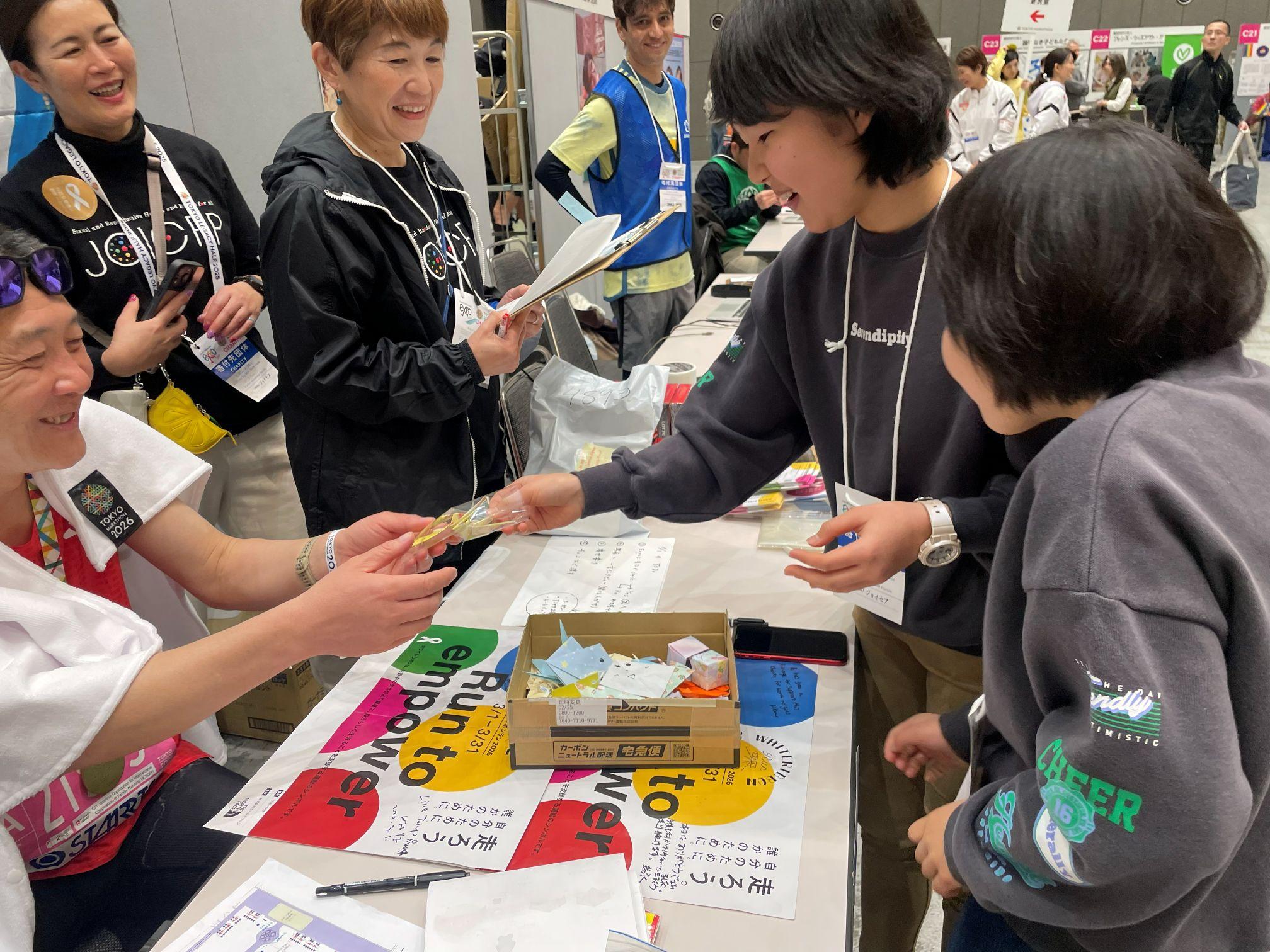 ジョイセフのブースには、チャリティランナーの皆さんやご家族、友人が立ち寄ってくれました。本番直前の高揚感と熱気に包まれ、皆さんの笑顔がとても印象的でした。