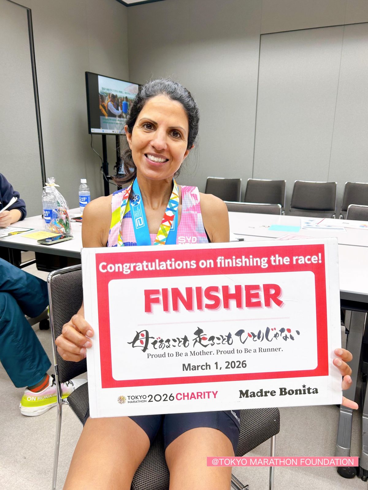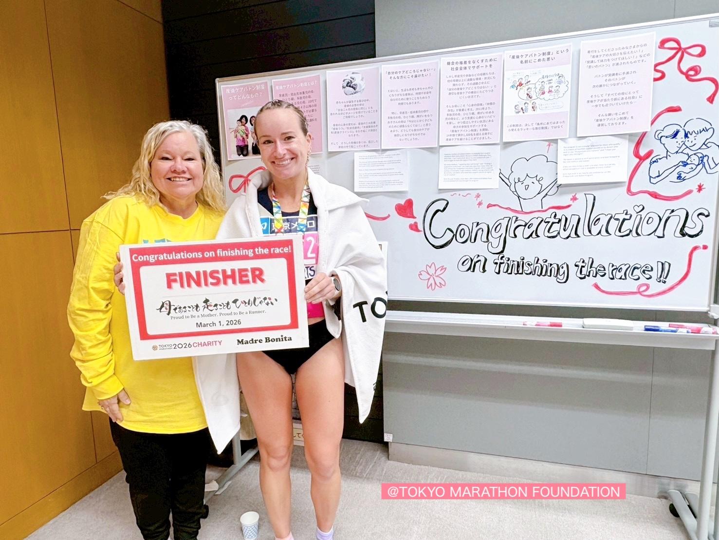 私の人生のテーマである「産後ケア」と、情熱を注いでいる「ランニング」を組み合わせ、マドレボニータの代表として走れることは、まさに夢の実現でした。東京マラソンは私にとって初の海外マラソンチャリティであり、アボット・ワールドマラソンメジャーズ制覇に向けた挑戦において3大会目の達成にもつながります。この一生に一度の機会に、寄付と啓発活動の両面で貢献できたことを誇りに思います。